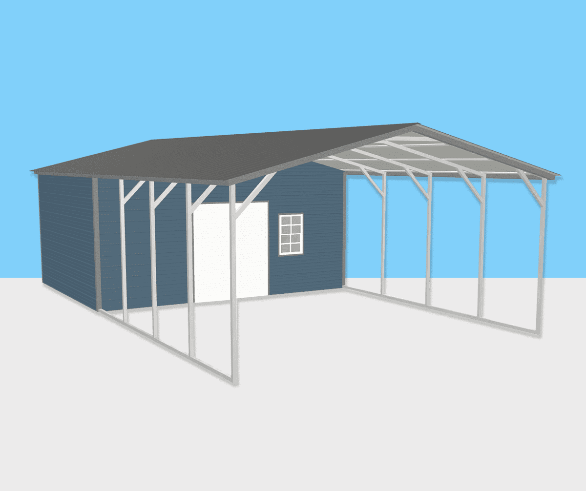 Featuring metal units that range from basic single and double carports, triple-wide metal carports, RV covers, motor home carports, fifth-wheel shelters, loafing sheds, barns and much more. All of our metal buildings feature heavy-gauge, galvanized steel construction for durability. Our standard configuration is 29 gauge roof metal with a 14 gauge tubular steel frame. If you live in an area that receives heavy wind, and rain you might consider upgrading to the stronger 12 gauge steel frame.