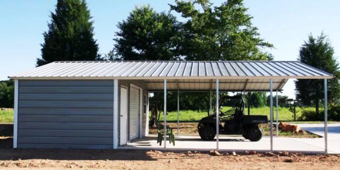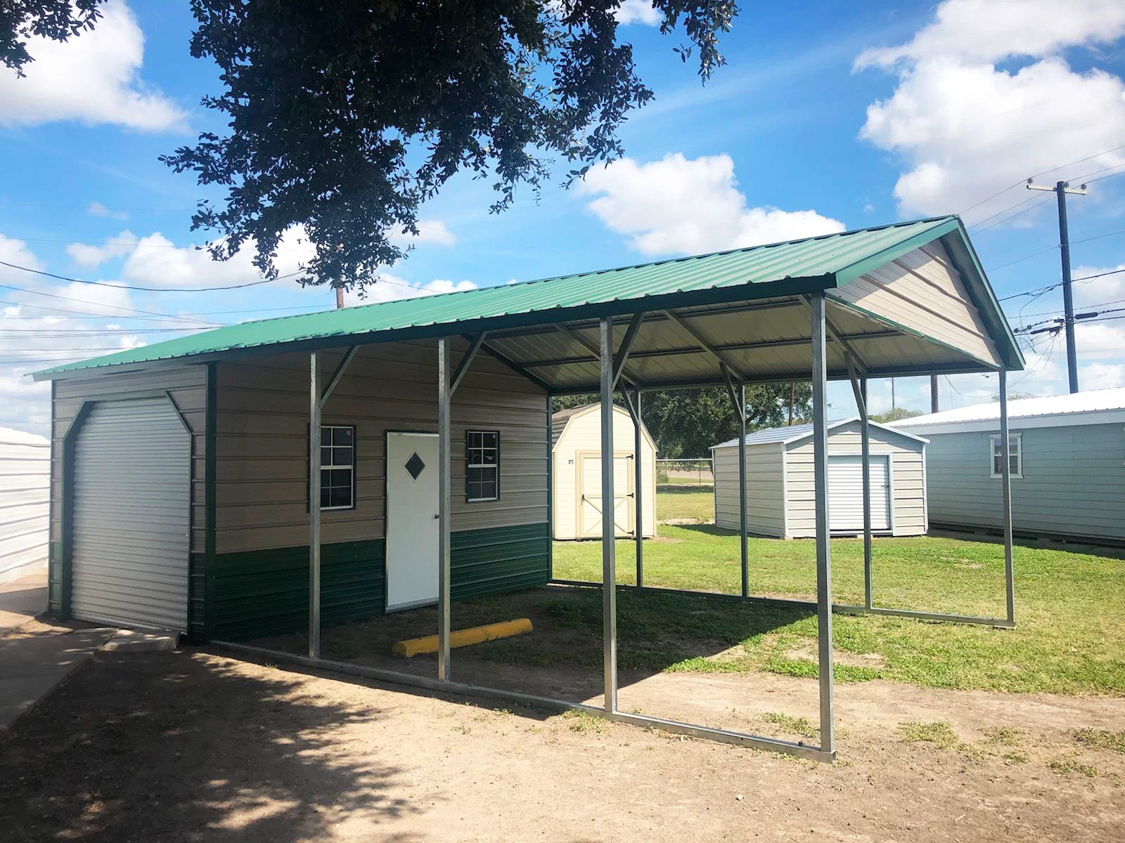 Featuring metal units that range from basic single and double carports, triple-wide metal carports, RV covers, motor home carports, fifth-wheel shelters, loafing sheds, barns and much more. All of our metal buildings feature heavy-gauge, galvanized steel construction for durability. Our standard configuration is 29 gauge roof metal with a 14 gauge tubular steel frame. If you live in an area that receives heavy wind, and rain you might consider upgrading to the stronger 12 gauge steel frame.