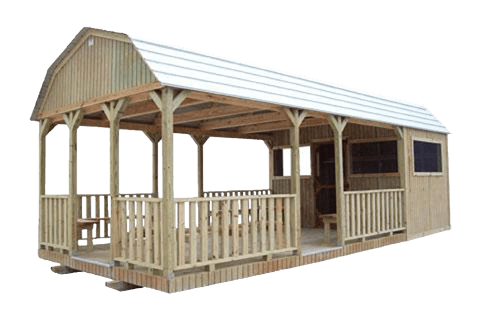 The outer area is covered & has railings and optional built in picnic tables for easy, shaded enjoyment all under one roof.